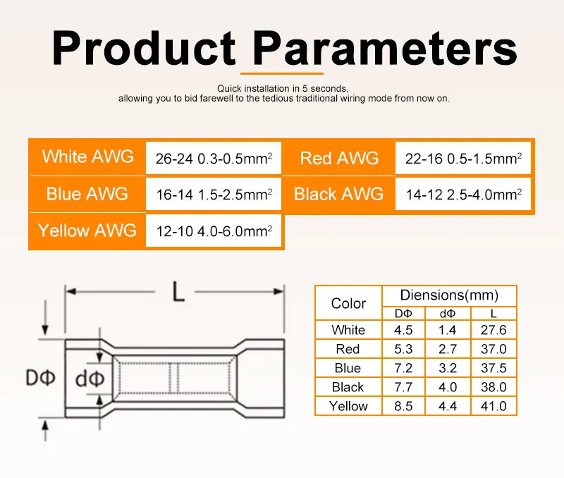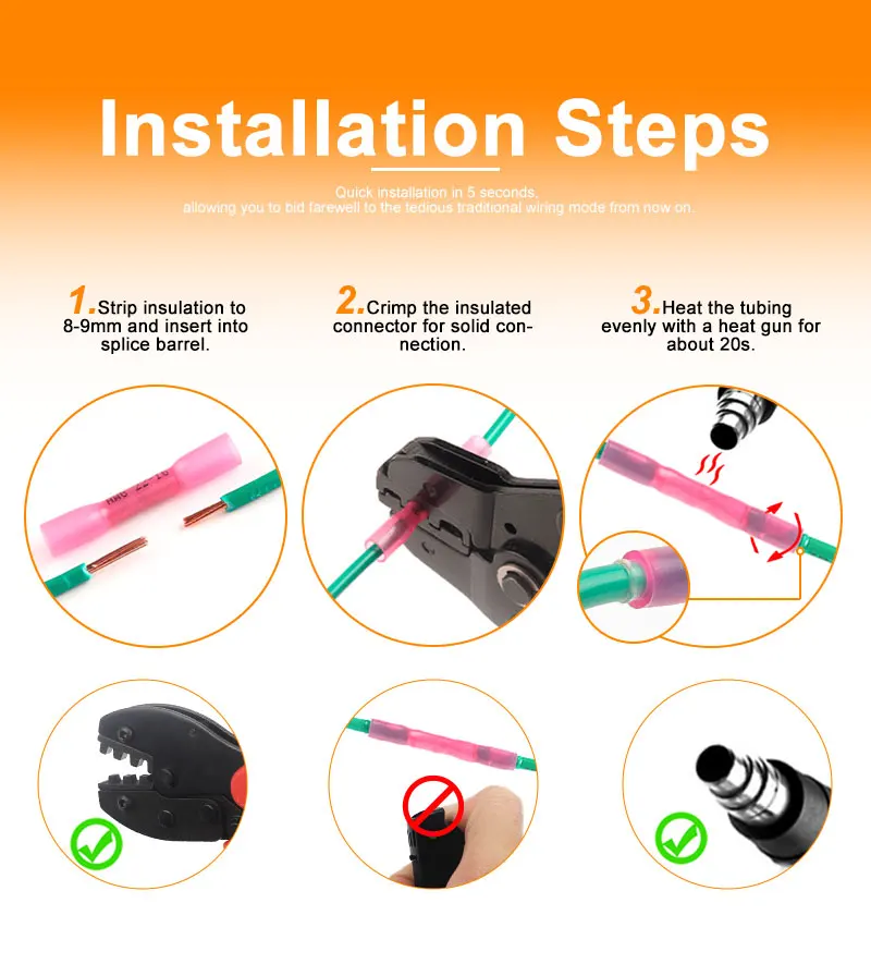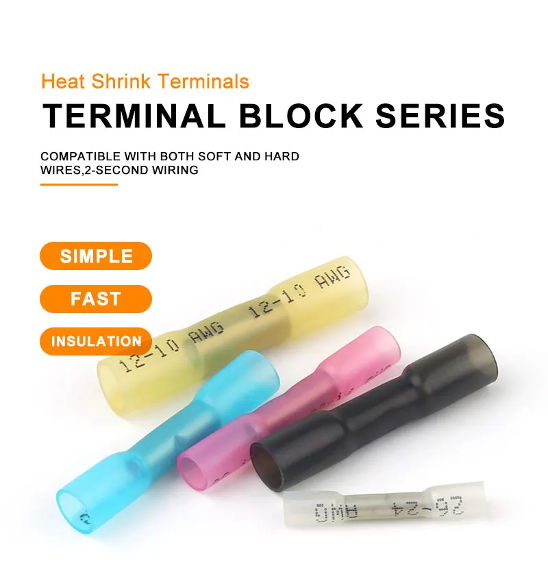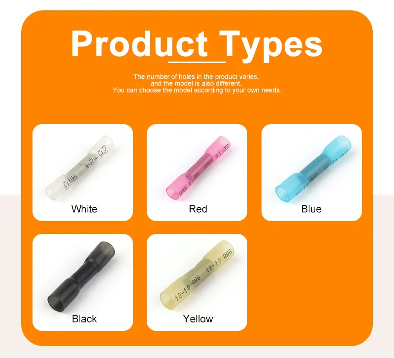 50pcs Heat Shrink Butt Wire Connectors Waterproof Insulated Automobile Electrical Cable Crimp Terminals AWG 26-10 0.3-6.0mm2