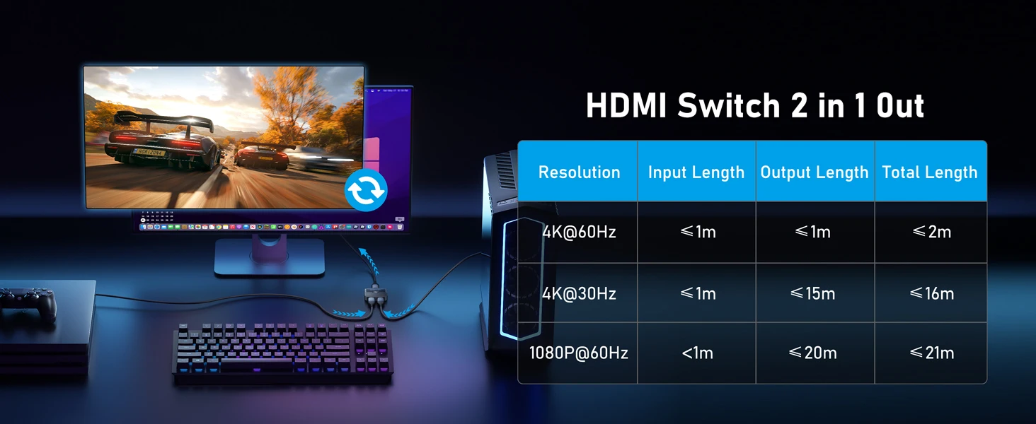 Lemorele 4K HDMI Splitter Switch 2 in 1 Out 60Hz HDMI-compatible 2.0 Hub Switcher for PC Laptop HDTV Xbox PS4 PS5 TV Macbook