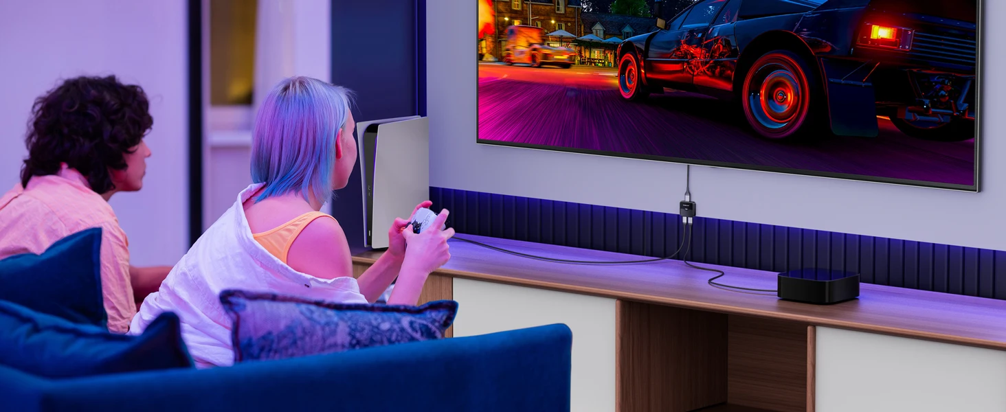 The HDMI splitter is compatible with most devices with a standard HDMI interface. With it, you can easily and flawlessly sync your device content to your display.